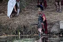 Reenactment of Decimus Junius Brutus Callaicus crossing the river Lethes or Oblivion (Lima river)