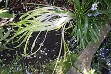 The leaves on the left side of this Spanish bluebell (Hyacinthoides hispanica) have become etiolated (sense 1) after having grown under an opaque cover; compare the ones on the right which are not etiolated.