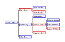 - A diagrammatic representation of a pedigree, illustrating the connections between a person's ancestors, offspring and other relatives