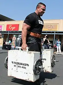 - (strength athletics) A strength and endurance event in which a competitor carries a heavy weight in each hand over a set distance.