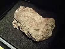 A dried portion of the so-called “Whitechapel fatberg” that blocked a sewer in Whitechapel, London, in 2017 and took nine weeks to remove[n 1]