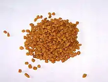- (cooking) fenugreek: the seeds of Trigonella foenum-graecum used as a spice