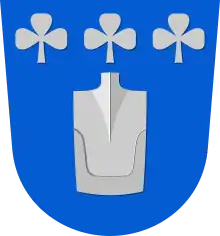 Azure, a shovel-head argent, three trefoils argent fesswise in chief.