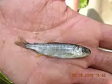 - (zoology) A juvenile fish that has developed scales and working fins.