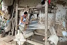 A man weaving fique