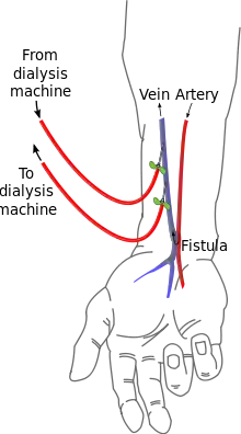 - Sometimes, a fistula will be intentionally created; for example, an arteriovenous fistula is sometimes created to ease the treatment of a patient with end stage renal failure.