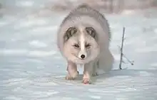 - (zoology) arctic fox, Vulpes lagopus; species of the family Canidae