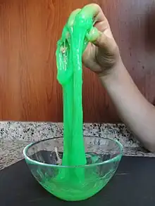 - A rubbery polymer formed by cross-linking of polyvinyl alcohol with a boron compound, used as a plaything or to demonstrate physical properties.