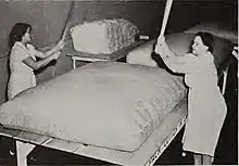 Fluffing a cotton mattress by beating it with brisk strokes