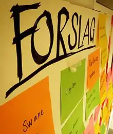 "Forslag" with the meaning of proposals on a Danish notice board.