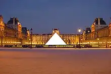 Without the freedom of panorama, any copyrighted work within images must be censored out, like the Louvre Pyramid at the centre of this image.
