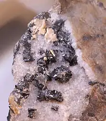1. (mineralogy) A complex cubic sulfosalt mineral of silver, copper, iron, antimony, and arsenic.