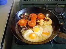 - (Ireland, British, cooking) A meal of fried sausages, bacon, eggs, etc.