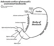 Human stomach schematic showing location of fundus