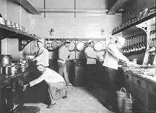 Galley of the Austrian passenger ship S.S. Africa in the Mediterranean Sea about 1905