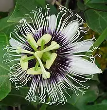 - Any of several species of genus Passiflora of passion flowers of tropical America.