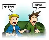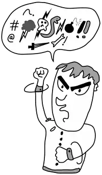 A cartoon with the charactersswearing represented with grawlixes (sense 1.2).