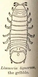 - Any of various wood-boring marine crustaceans of the genus Limnoria, especially Limnoria lignorum, which cause damage to underwater wooden structures.