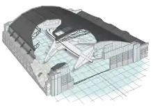 First attested in 1880. Via German Hangar, ultimately from French hangar. Its original meaning was barn, shed. The modern meaning was first attested in 1911.[1]