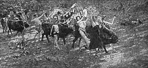 Amanda Brewster Sewell, The Sacred Hecatombs (1904; sense 1). The painting depicts Greek maidens and children dancing while leading a procession of cattle to be sacrificed to the gods.