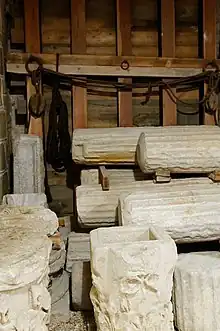 Rekreaĵo de romia holdo, enhavante ŝtonajn kolonojn