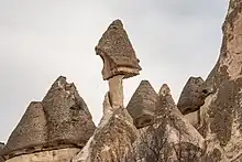 - (spire of rock): tent rock, fairy chimney, earth pyramid
