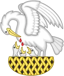 - THE PELICAN is represented in both British and Foreign Armory with a bowed neck vulning (ie . wounding) her breast; [...] Argent, three pelicans in piety or, their nests vert, was borne by the Scottish family of PATTERSON.