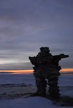 - A structure of piled stones, designed to resemble a humanoid figure and traditionally constructed by the Inuit.