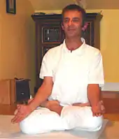 Borrowed from Sanskrit योग (yoga, “yoking, union”), from Proto-Indo-European *yewg- (“to join”). Related to jugo (“yoke”).