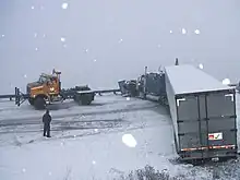 - (colloquial) A semi-trailer truck accident in which the vehicle mimics the closing of a jack-knife.