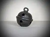 small, hollow, spherical metal bell with a narrow slit opening or small holes, containing a loose ball or rod as a clapper