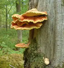 - conk (shelf- or bracket-shaped fruiting body of these fungi)