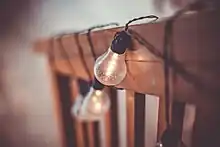 - (colloquial) light bulb (electric source of light, especially a bulb-shaped incandescent lamp)