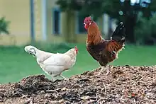 - chicken (domestic fowl of species Gallus gallus, Gallus domesticus)