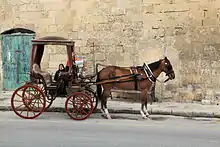 - (Malta, road transport) A type of traditional carriage pulled by a horse or pair of horses.