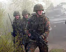 | instrumental (įnagininkas) | kariù | kariaĩs |