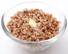 - A porridge made from boiled buckwheat groats, or sometimes from other cereal groats.