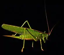 a great green bush-cricket (Tettigonia viridissima), a species of katydid