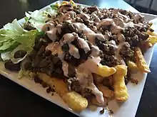 - It is in many ways similar to a kebabsallad, but here with mostly french fries instead of lettuce.