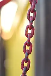 - chain (series of interconnected rings or links usually made of metal)