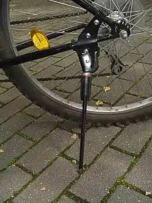 - A levered bar that can be folded down from the frame of a bicycle or motorcycle to prop it upright when not being ridden.
