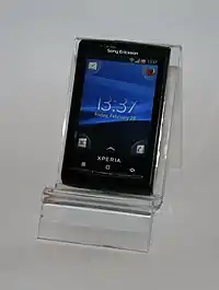 - A folding bar to prop up a mobile phone, tablet or similar device when it is being used on a surface.