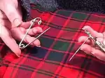 or bobby pin, which is inserted through the outer, front apron, or through both aprons of a