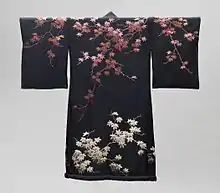 - A traditional Japanese T-shaped, wrapped-front garment with square sleeves and a rectangular body, now generally worn only on formal occasions.