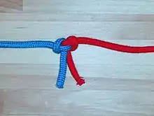 - A looping of a piece of string or of any other long, flexible material that cannot be untangled without passing one or both ends of the material through its loops.