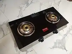 From Dutch komfoor, from Picard cauffoir, from Middle French [Term?] (French chauffoir), from Vulgar Latin calefare, from Latin calēre (heat) + facere (make, do).