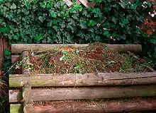 - (horticulture) compost bin, composter (container or suitably prepared place intended for composting waste)