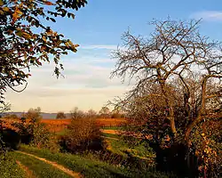 - (dated, expressively) landscape (portion of land or territory which the eye can comprehend in a single view)