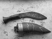 - A curved Nepalese knife used especially by Gurkha fighters; many variants exist, but all share recurve as a common theme.