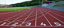 løpebane m (definite singular løpebanen, indefinite plural løpebanar, definite plural løpebanane)